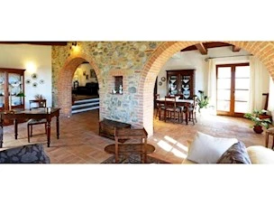 “Villa Celeste” è situata a meno di un chilometro di distanza dal centro storico di Città della Pieve, in bella zona residenziale e panoramica. L' immobile principale di circa 395 mq è disposto su tre livelli ed e' cosi' composto: ampia taverna dotata di cucina abitabile con camino, ripostiglio, bagno, magazzino, locale tecnico e spazioso garage di 90 mq con 4 posti auto. 4 automobili al piano seminterrato. Elegante zona giorno con doppio soggiorno, una sala da pranzo, una cucina abitabile che si affaccia su un portico di circa 19 mq, ideale per pranzi e cene d’estate, due camere che potrebbero essere usate anche come studio o sala hobby, ed un bagno al piano terra; zona notte con 3 camere da letto tutte matrimoniali, di cui la camera padronale è servita da bagno privato, guardaroba e loggia coperta con vista panoramica sulla campagna circonstante, altro bagno al piano secondo. La proprietà e' stata ristrutturata nel 2011 con materiali di pregio; il riscaldamento è a pavimento ed è alimentato anche da un sistema di pannelli fotovoltaici. Completa la proprietà un giardino recintato di 536 mq in cui è possibile realizzare la piscina e un annesso di 20 mq.